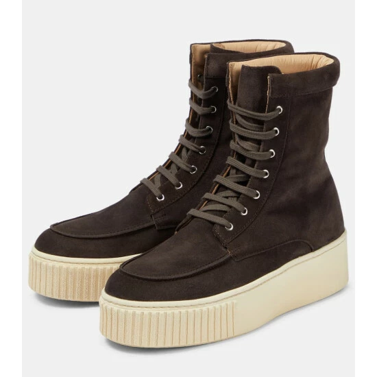Step into the tactile luxury of the Emanuel boots by Gabriela Hearst. Made from brushed suede in Portugal, this lace-up style has curved panels and natural rubber outsoles with grooved details.