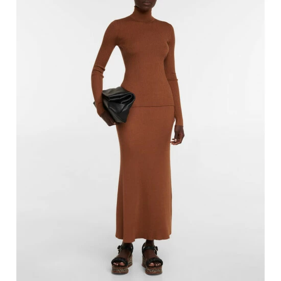 The Epper midi skirt from Gabriela Hearst is designed for a body-hugging fit. This high-rise style is knitted from cashmere and silk yarn in a refined ribbed pattern.