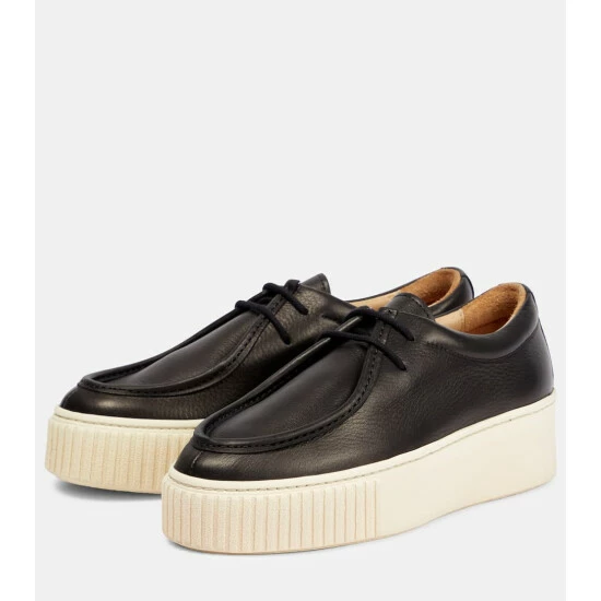 The Fontaina sneakers from Gabriela Hearst are made from black calf leather with lace-up vamps. Their platform soles are made using Bloom technology, through which algae-based foam is incorporated into the soles.