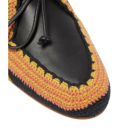 Gabriela Hearst’s Hays loafers combine the best of two worlds: artisanal skill and leather craftsmanship. Their calfskin panels at the vamp and heels are contoured with colorful crocheting.