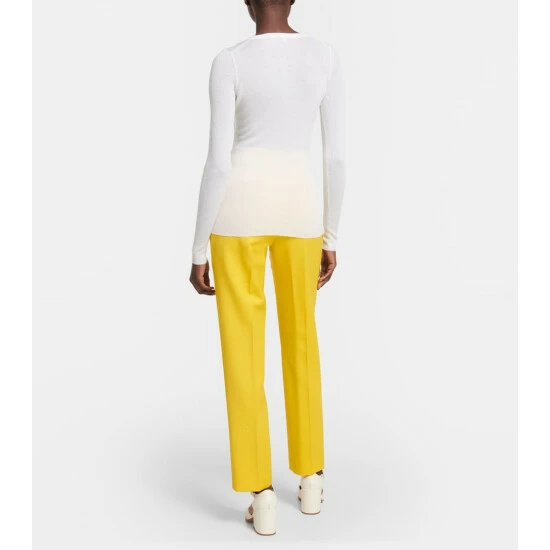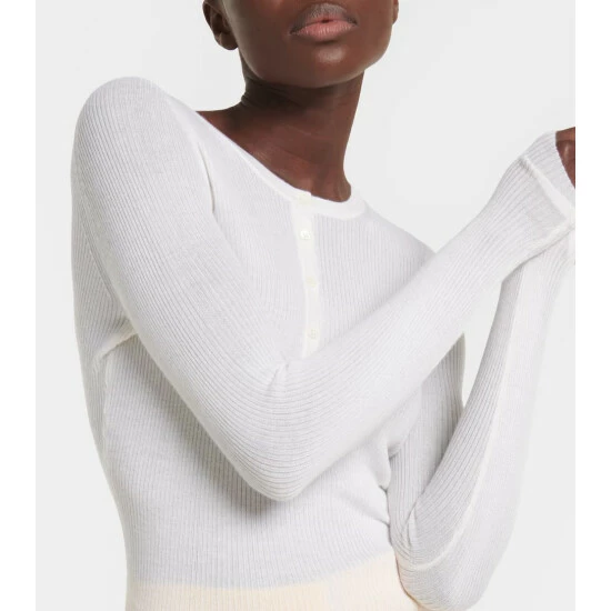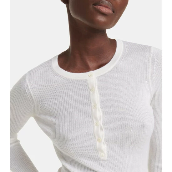 The Julian top from Gabriela Hearst will be a mainstay in your wardrobe for several seasons. Made from cashmere with silk fibers for a yarn that’s lightweight yet insulating, it features a partially buttoned front.