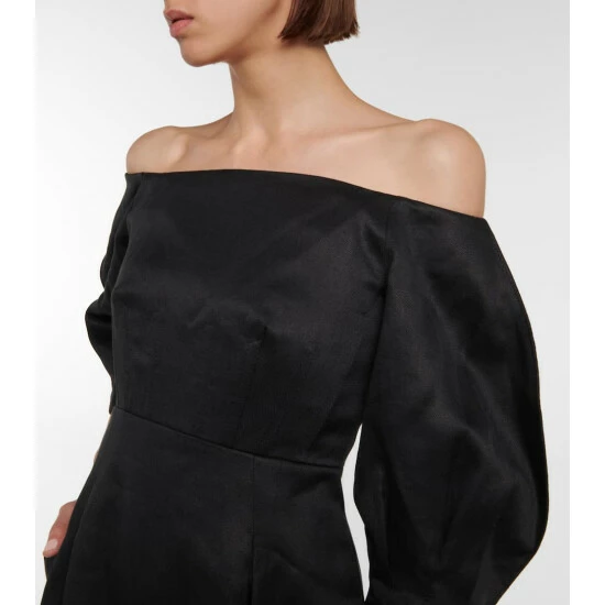 Let Gabriela Hearst’s Majano midi dress be your go-to option for warm weather events. Made from pure linen, it’s an off-shoulder design with puff sleeves and a fitted silhouette.