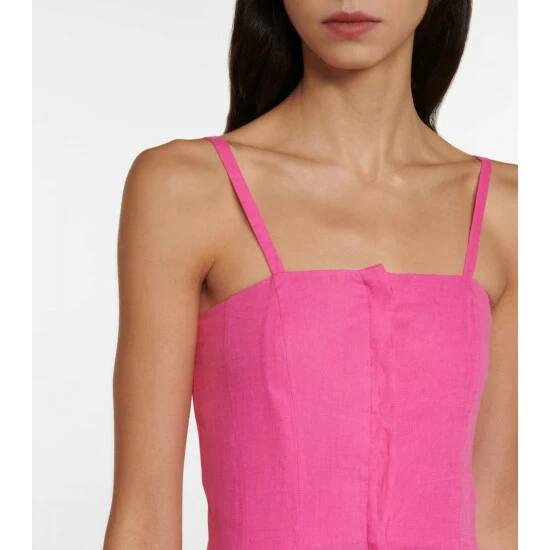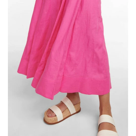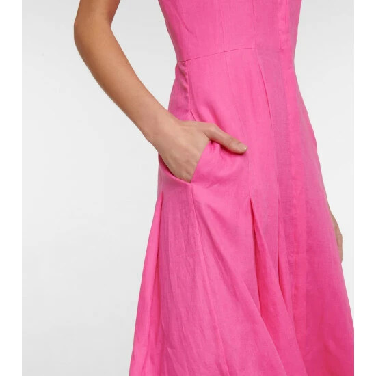 Gabriela Hearst’s designs hold special regard to sustainability. The Margritte midi dress is made from vegetable-dyed, pink linen yarn for an eco-friendly outlook. It’s darted for a contoured bodice and has a concealed button-down front.