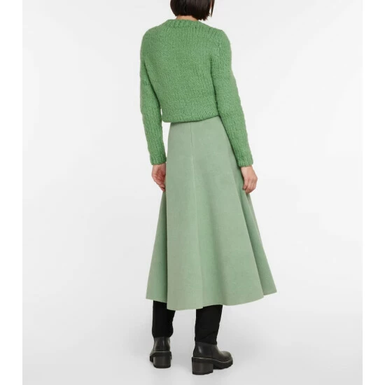The Maureen skirt from Gabriela Hearst is made in Italy from recycled double-faced cashmere felt. This style has a fitted hip with a sweeping hemline and features slit pockets on the sides.