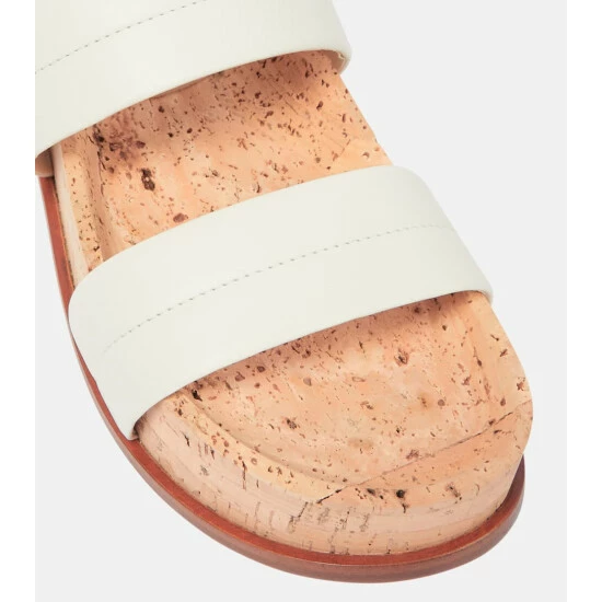 Gabriela Hearst’s Striker sandals are defined by their natural cork platform insoles and contoured footbeds. They have leather outsoles and white lambskin leather straps.
