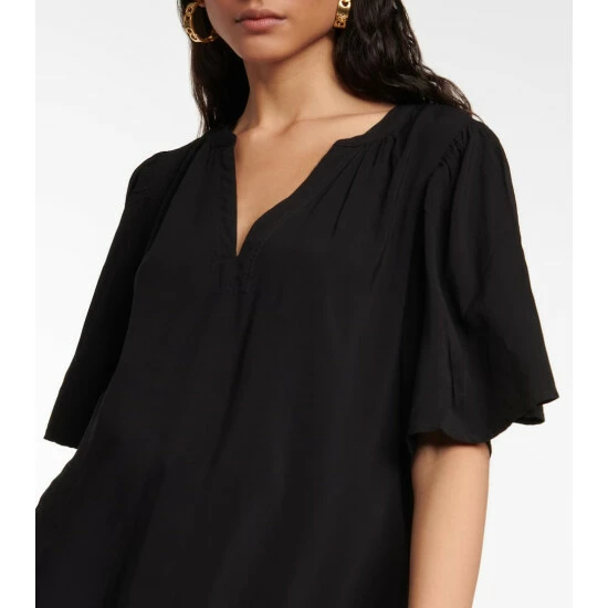 The breezy Avary top from Velvet will be your go-to for hot summer days. The black style is made from soft challis and has a relaxed silhouette with a V-neck and fluttering sleeves.