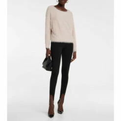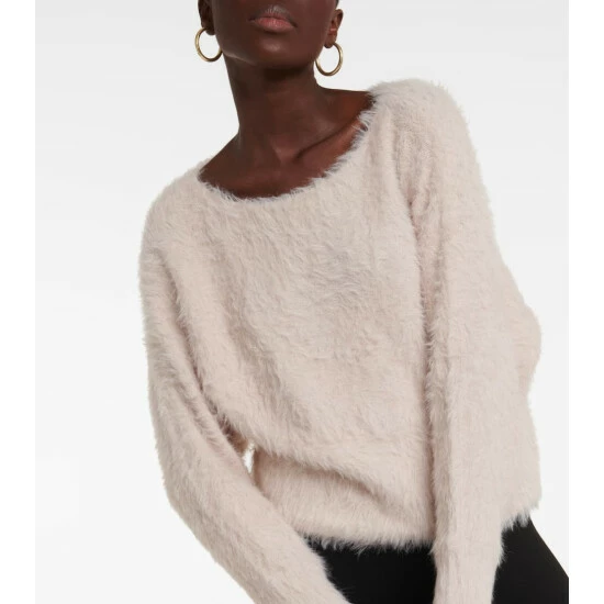 The Betty sweater from Velvet is made from lightweight feathery yarn with a textured finish that’s soft to the touch. It’s designed in a long-sleeved silhouette with a boat neckline.
