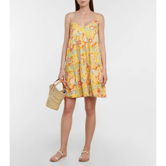 This Velvet minidress is shaped into a relaxed, tiered silhouette with a V-neckline and camisole straps. The cotton design is finished with a brightly colored floral print.