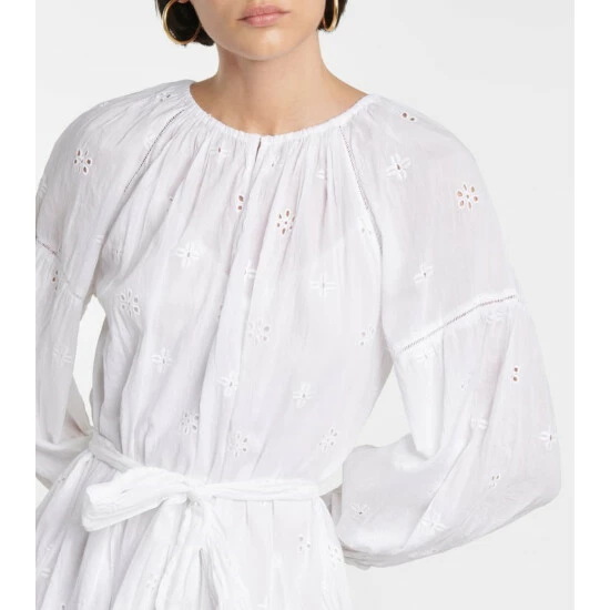 The Gracie minidress from Velvet is the perfect summer essential. It’s cut from breathable, lightweight cotton and features charming broderie anglaise details with a belted waist and puffy sleeves.