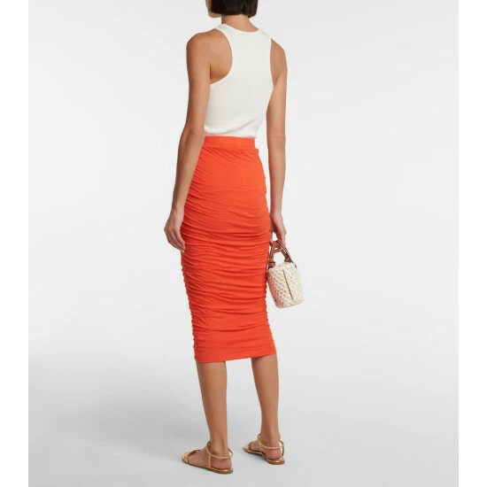 The Lisa midi skirt from Velvet is ruched at both sides for a sculpted silhouette. It’s made from cotton-blend jersey and is designed to sit mid-waisted.