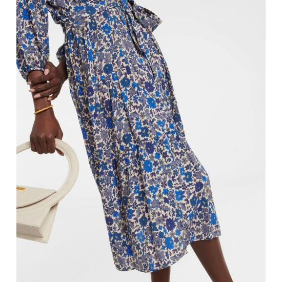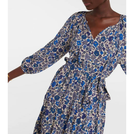 Made in the USA from Velvet’s signature challis fabric, the midi-length Maddy dress features a blue floral print. Its belted waist falls into a gently pleated skirt for an elegant finish.