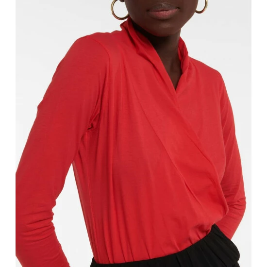 The Meri top from Velvet is made from a cotton-blend in a fitted silhouette. It features long-sleeves and a draped look in front with a crossover V-neckline.