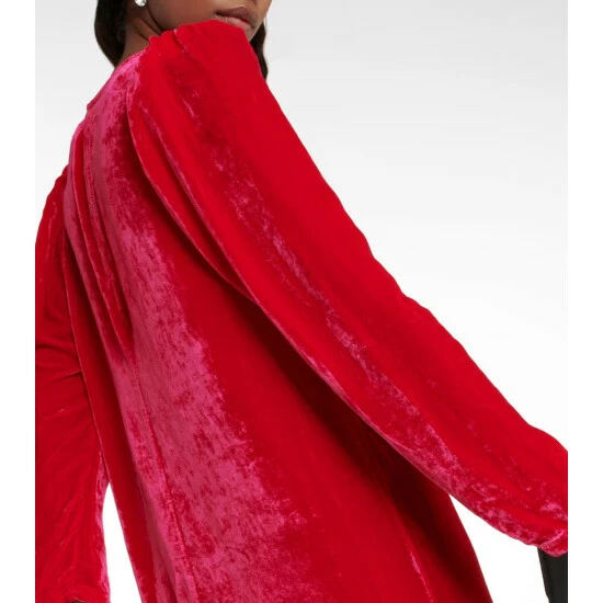 In a lush red color, this minidress from Velvet is made from soft velvet. The long-sleeved style features a shift silhouette and ruched detailing on the shoulders that adds dimension.