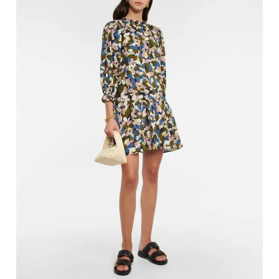 On warmer days, opt for a breezy design like this minidress from Velvet. It’s made from breathable cotton to a relaxed silhouette, printed with a multicolored motif, and complete with ruffled trims.