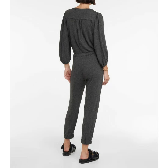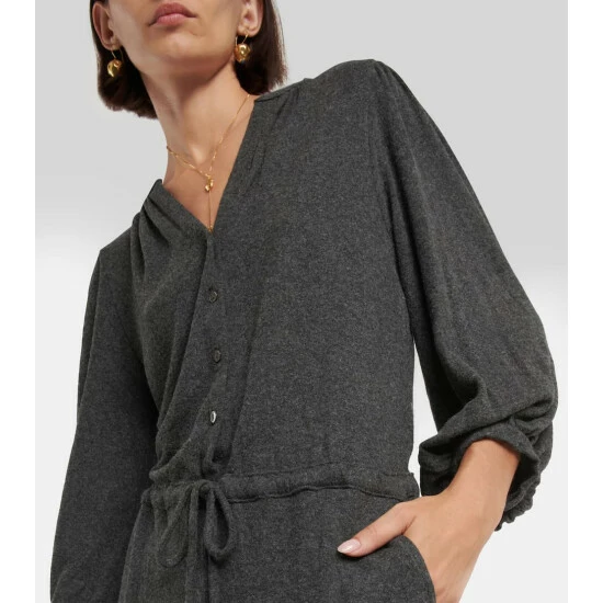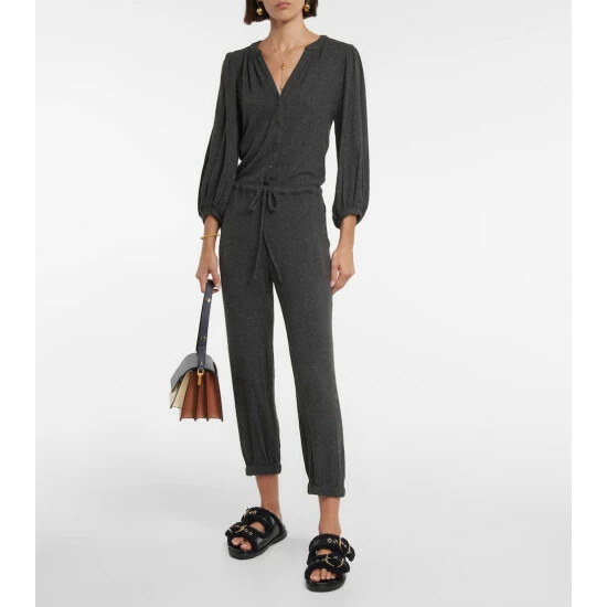 Made from a lightweight, stretchy fabric, Velvet’s Saria jumpsuit has a buttoned front and a drawstring waist.