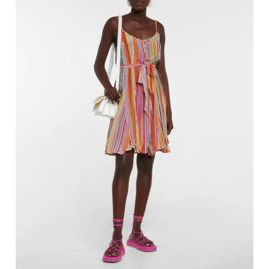 The Tiana dress from Velvet is a sunny addition to your summer wardrobe. Made from breezy viscose, the multi-color striped design is finished with a belted waist and delicate spaghetti straps.