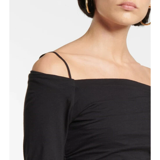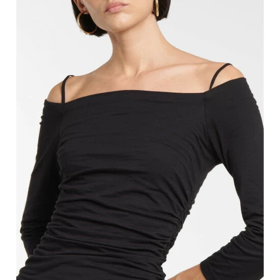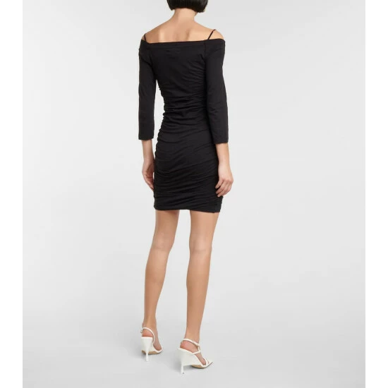 The Trixy minidress from Velvet is made from a comfortable cotton jersey. It has a boat neckline and a figure-hugging silhouette that’s enhanced with ruching at the sides for a flattering effect.
