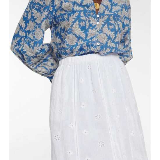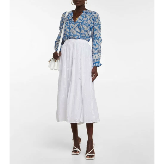 The Wynne skirt from Velvet was made for swaying in the summer breeze. The full cotton skirt is designed with floral broderie anglaise detailing and cut into a classic midi length.